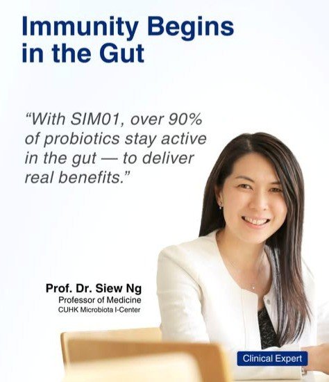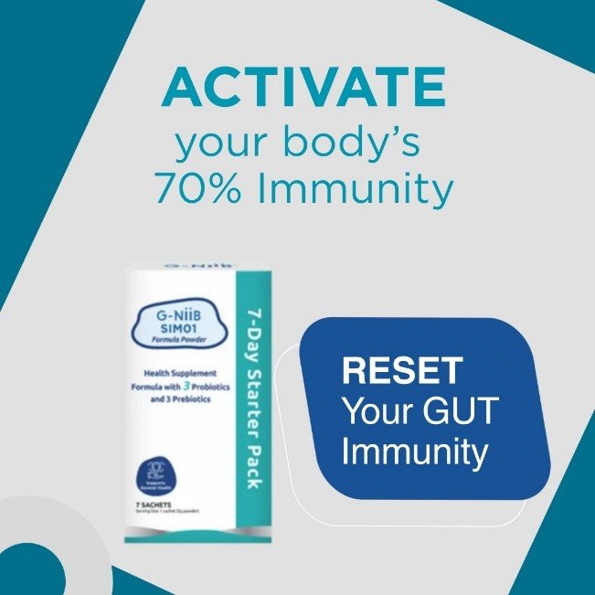 Activate your body’s immunity by RESETTING your gut microbiota with G-NiiB SIM01. It’s a clinically-proven, award-winning, treatment-grade probiotic + prebiotic formula derived from AI metagenomics and developed by renowned scientists and researchers from the Chinese University of Hong Kong (CUHK).