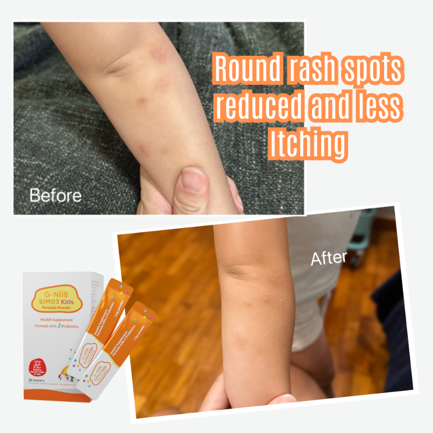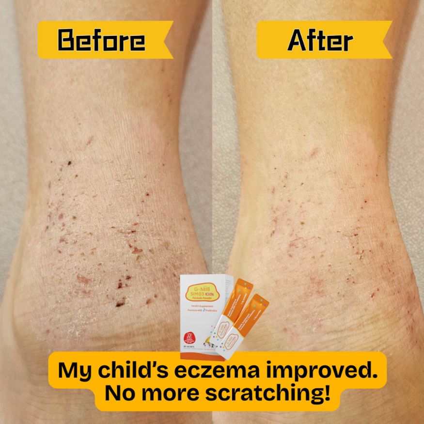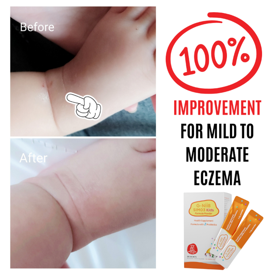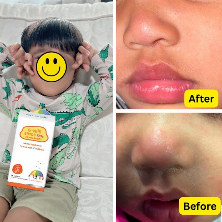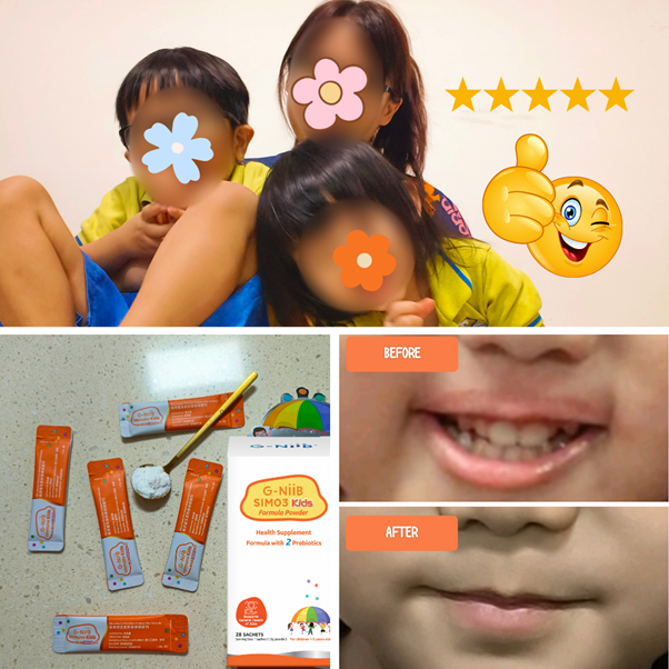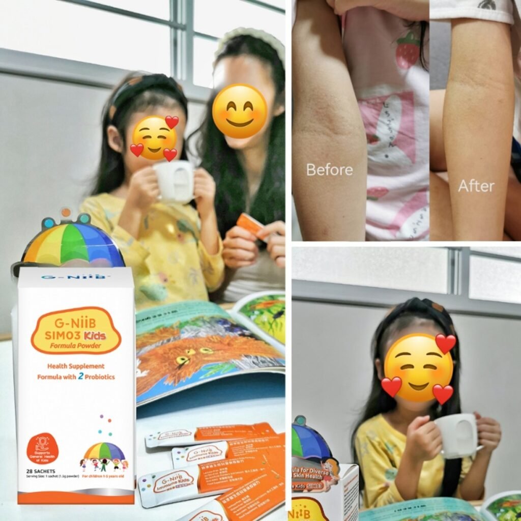 “My kids were born with very sensitive skin, and even the smallest injury can worsen their skin condition if not properly cared for. Moreover, it can spread, forming a bigger patch. I have always wanted to find some supplements that can help to build their immune system, so we decided to try G-NiiB SIM03.