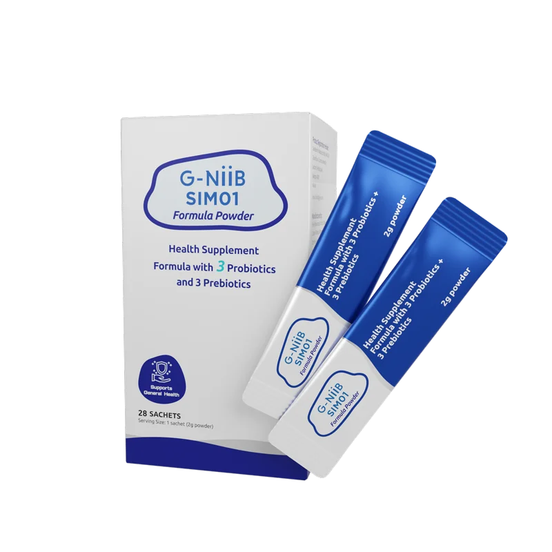 G-NiiB SIM01 is a microbiome-based supplement clinically tested in patients with COVID-19 and other respiratory viral infections. It has been shown to support gut health, reduce inflammation, and aid recovery.