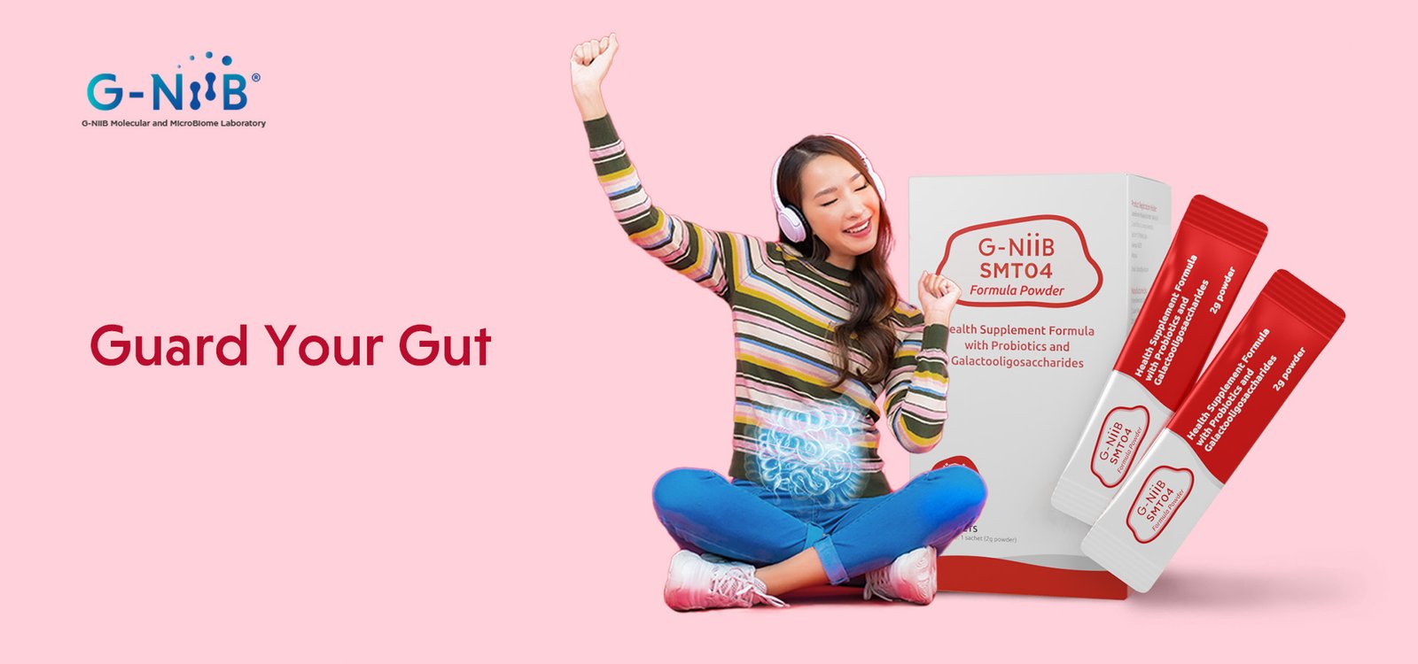 G-NiiB SMT04 is a unique microbiome precision formula developed by the Faculty of Medicine of a renowned university in Hong Kong. The result of the research precisely identified the live good bacteria (probiotics) and prebiotics that are most suitable for the gut microbiome of Asians to combat harmful bacteria in the gut and strengthen the intestinal wall integrity. The patent formula is built specifically for the Asian gut and is clinically shown to be effective and safe in local patients.